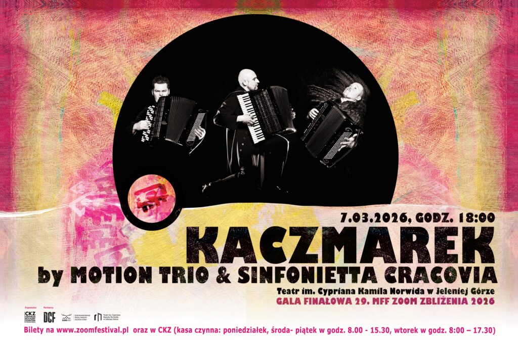 Motion Trio to polskie trio akordeonowe, łączące w swej twórczości ogień muzyki o korzeniach wschodnioeuropejskich z lodowatą precyzją wielkich kompozytorów klasycznych. Motion Trio wydało trzynaście albumów, wystąpiło w czterdziestu czterech krajach świata na wszystkich kontynentach, grając w najsłynniejszych salach koncertowych jak nowojorska Carnegie Hall, Barbican Center w Londynie czy wiedeński Konzerthaus. Znakiem rozpoznawczym jest niezwykle oryginalne brzmienie tria, osiągane, co najważniejsze, przy zachowaniu dźwięku akordeonu: bez przetwarzania, bez udziału innych instrumentów, bez trików techniki. Motion Trio po raz pierwszy zagra w Jeleniej Górze Orkiestra Stołecznego Królewskiego Miasta Krakowa Sinfonietta Cracovia to jeden z wiodących zespołów kameralnych w Polsce. Specyfikę Orkiestry definiuje jej wszechstronność wykonawcza, precyzja i elastyczność, które z powodzeniem przenosi na skład symfoniczny. Sinfonietta Cracovia jest ceniona za wykonania muzyki współczesnej w różnych odmianach (od awangardowej po filmową).